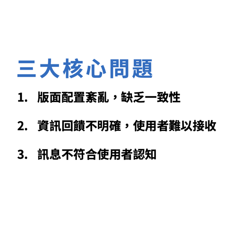 歷經一個月的使用者研究後,團隊進一步將研究結果收斂出三個主要問題: