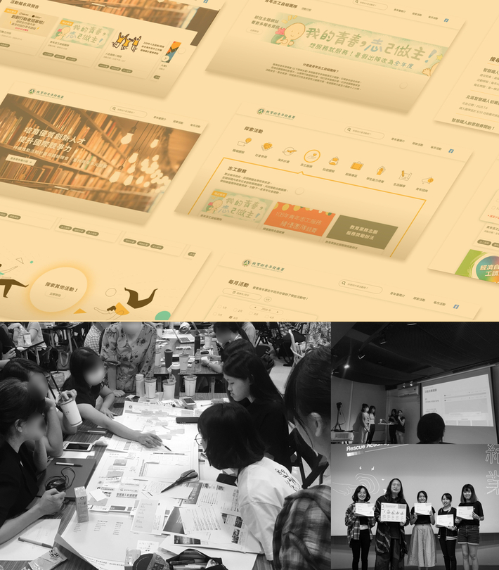 團隊經過前期研究後,發現「太少青年參與活動」及「資訊散亂」是現階段網站遭遇的主要挑戰;透過重整網站地圖、放大「活動」在網站上的視覺焦點,以減少使用者在找尋活動的步程,進一步提高使用意願。